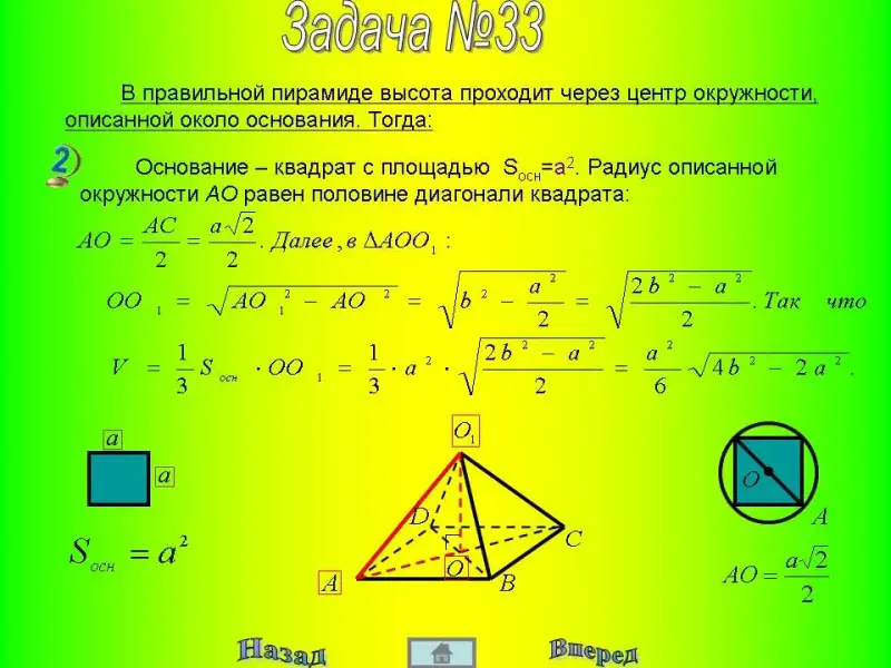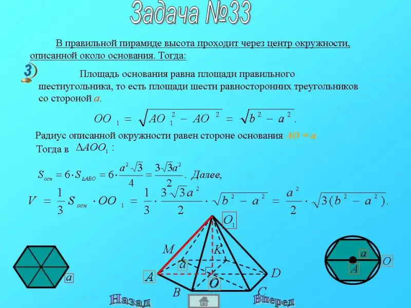 Оборудование и материалы: компьютер, экран, проектор, презентация "Объем пирамиды".