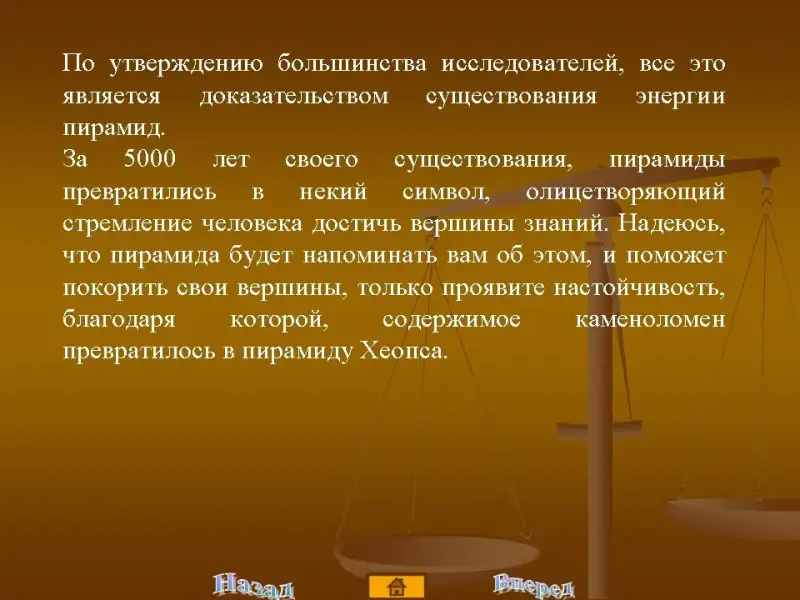 За 5000 лет своего существования, пирамиды превратились в некий символ, олицетворяющий стремление человека достичь вершины знаний.