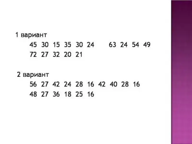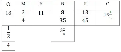 (слайд № 13) Каждому варианту даны ряды чисел. Надо числа заменить буквами из таблицы, вспомнив как получаются эти числа.