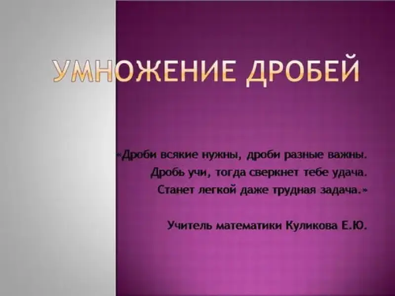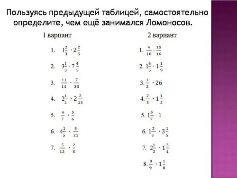 Учитель: Интересы Михаила Васильевича были обширными. Чтобы их узнать, для начала вспомним правила умножения дробей.