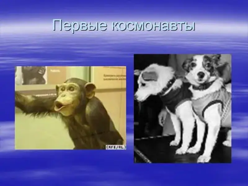 Слайд 12 (первые космонавты: обезьяна и собаки)