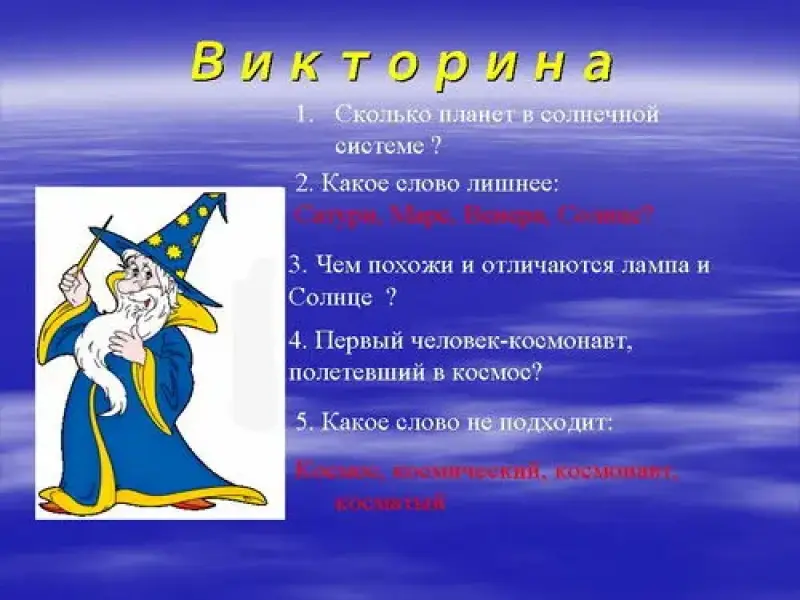 2 слайд (звучит космическая музыка)