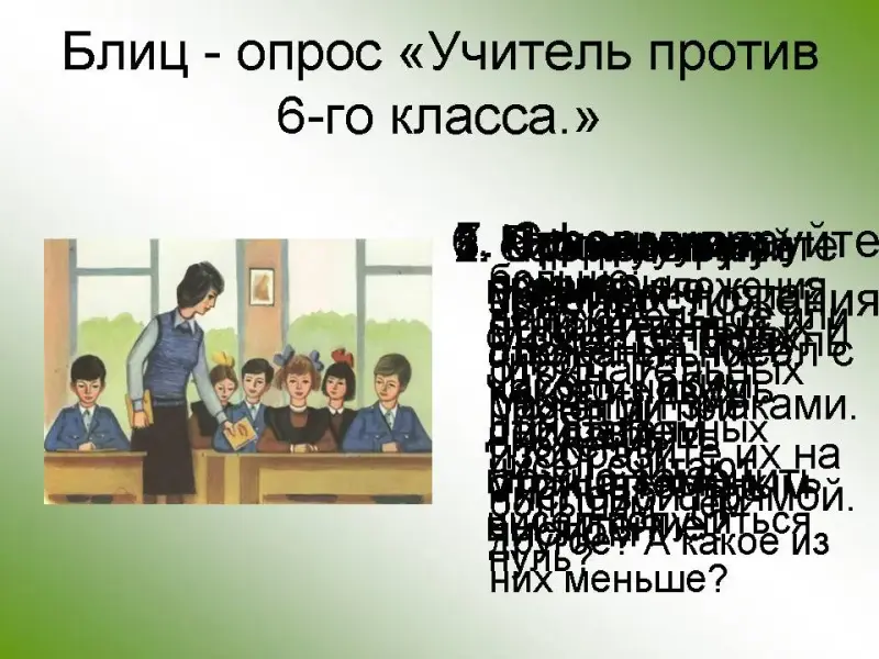 - Какое число больше: положительное или отрицательное? Какое из двух отрицательных чисел считают большим, чем другое? А какое из них меньше?