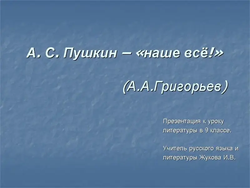 Урок литературы в 9-м классе по теме "А.С. Пушкин – наше все!"