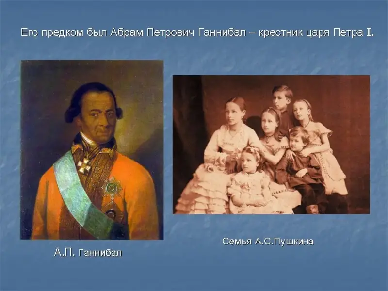 - Его предком был Абрам Петрович Ганнибал - крестник царя Петра I.