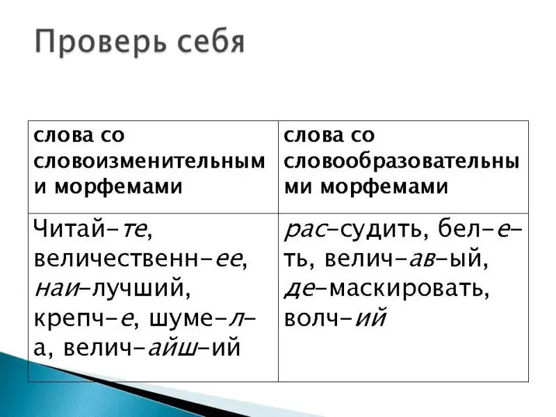 - словообразовательные и формообразовательные морфемы