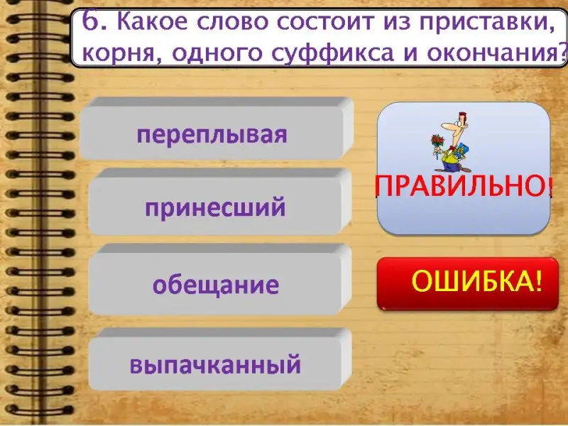 | 6. Омонимичные корни - это корни, имеющие разное лексическое значение, как в словах носить и носик | ||