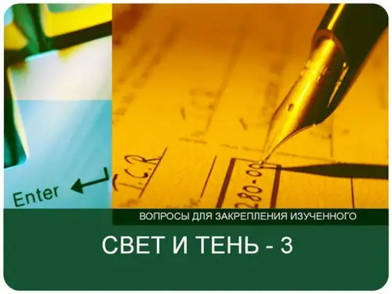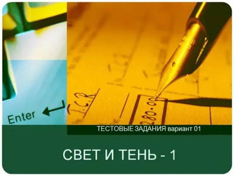 | 8-14 мин | Предлагает открыть файл "Свет и тень. Тест" (вариант 1, вариант 2, вариант 3, вариант 4) и выполнить тест | Работают над тестом | Формируются познавательные: логические и знаково-символические действия, происходит закрепление знаний на уровне узнавания и запоминания | |