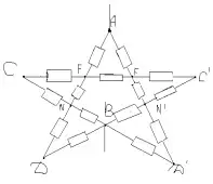 Сопротивления участков DNB;F`C`D`; D`, N`, B`; FCD равны между собой и равны R1: