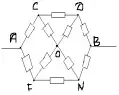 Рассчитать сопротивление между точками А и В данного участка цепи. Все резисторы одинаковы и их сопротивления равны r.