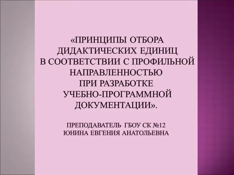 Отбор дидактических единиц в соответствии с профильной направленностью в учебно-программных документах