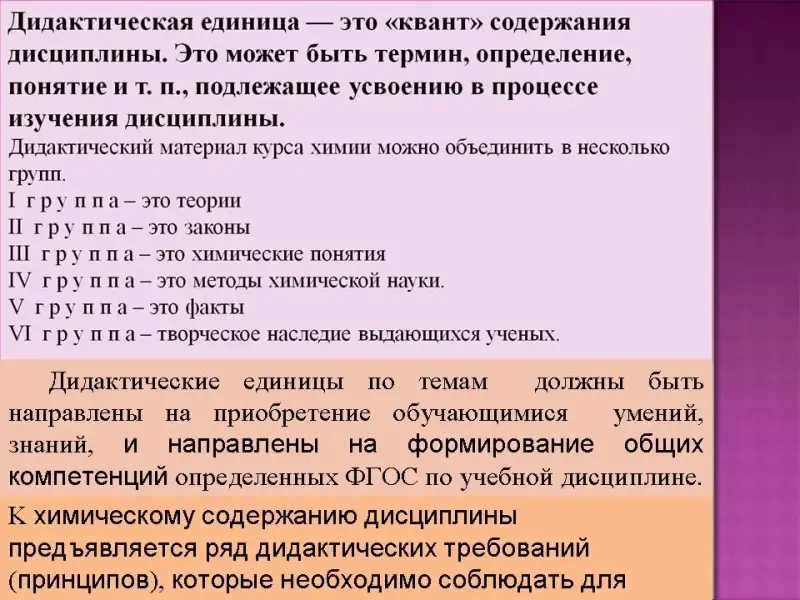 Дидактическая единица - это ≪квант≫ содержания дисциплины.
