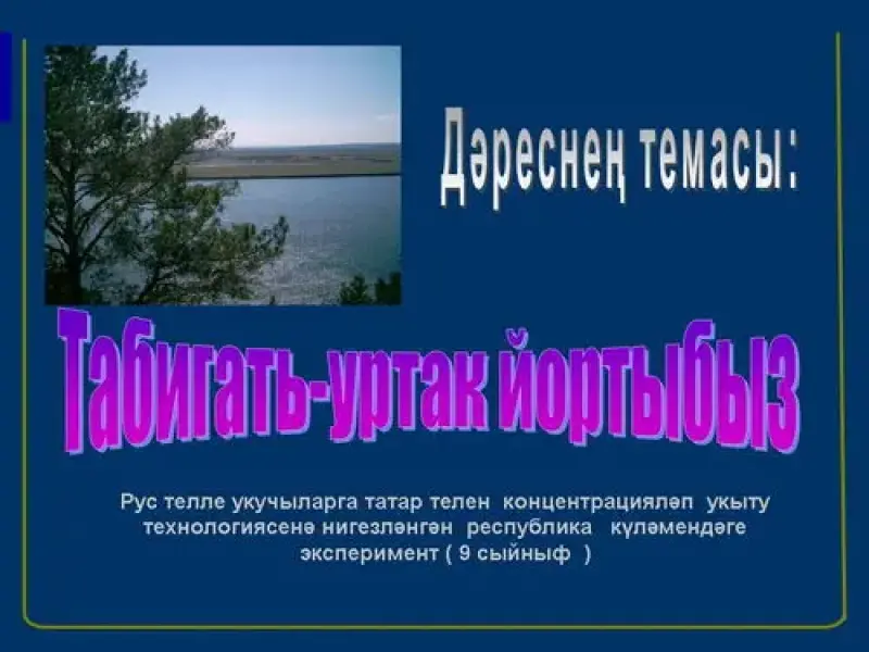 Бүгенге дәресебезнең темасы: "Табигать - уртак йортыбыз"дип атала. (2-слайд)