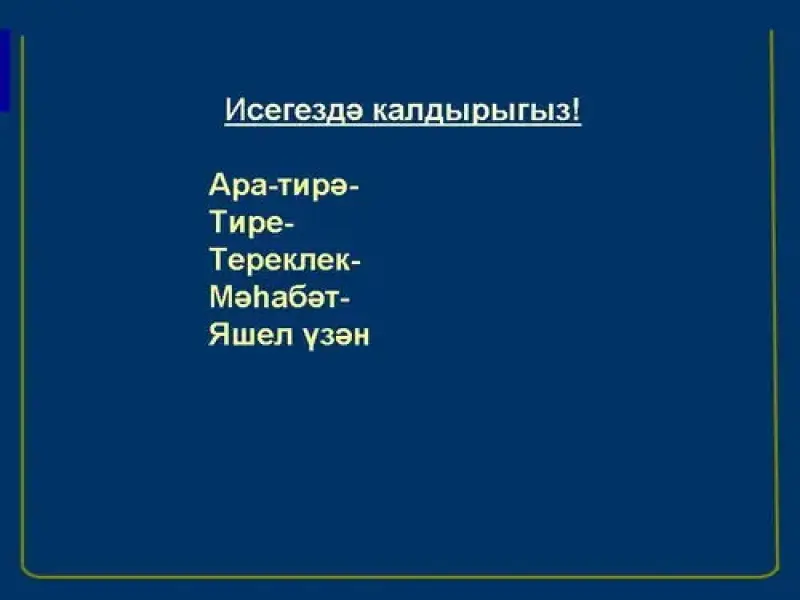 Укучылар,чираттагы слайдка игътибар итегез әле.