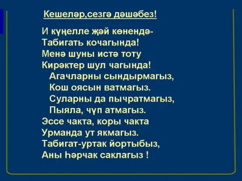 5. Кешеләр,сезгә дәшәбез! (15- слайд)
