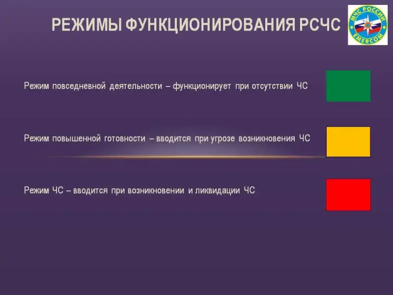 РСЧС имеет 3 режима функционирования в зависимости от складывающейся ситуации: