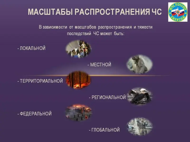 В зависимости от масштабов распространения и тяжести последствий ЧС классифицируются на: