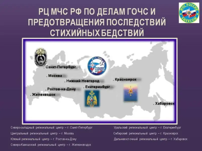 - на межрегиональном уровне - территориальные органы МЧС: региональные центры по делам гражданской обороны, чрезвычайным ситуациям и ликвидации последствий стихийных бедствий (региональные центры);