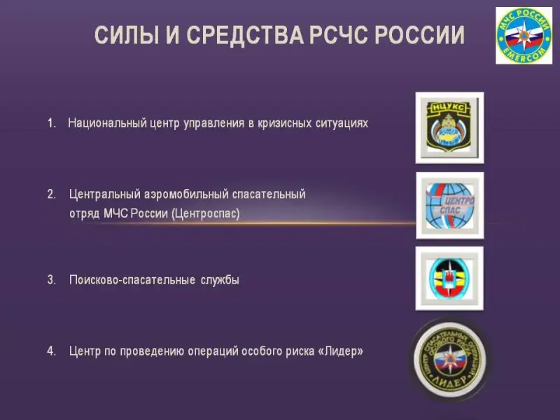 - Национальный центр управления в кризисных ситуациях - основной орган управления силами, средствами и ресурсами РСЧС в условиях кризисов и чрезвычайных ситуаций;