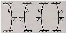 Демонстрация взаимодействия двух гибких проводников, расположенных вертикально.