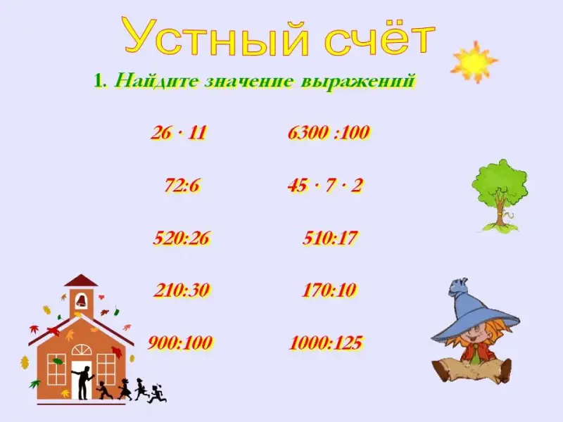 - Устный счет.