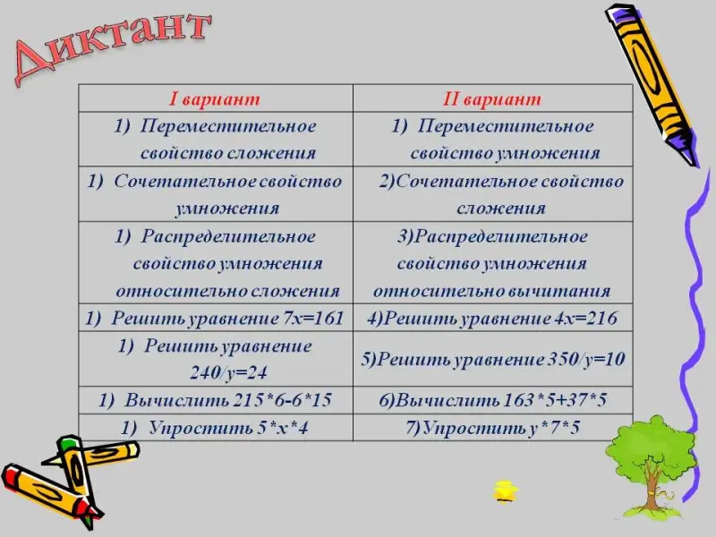 - Математический диктант с самопроверкой.