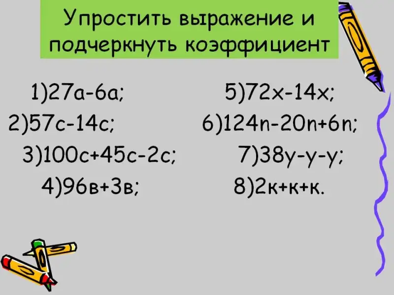 Задание: Упростить выражения и подчеркнуть коэффициент.