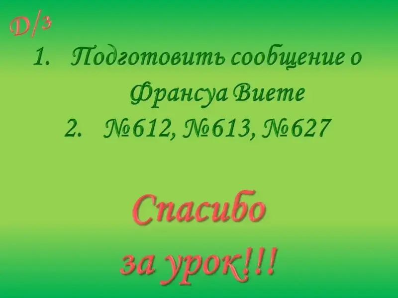 - Подготовить сообщение о Ф.Виете.