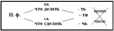 - Форма глагола, которая не указывает на время и число называется неопределенной формой глагола.