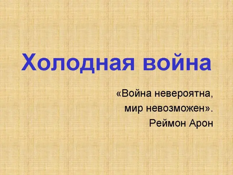 Эпиграф: «Война невероятна, мир невозможен». Реймон Арон