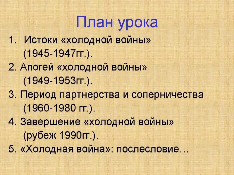 - Истоки «холодной войны» (1945-1947гг.)