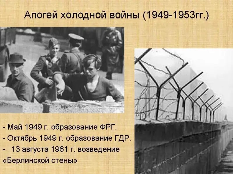 Вывод по I периоду II. Апогей холодной войны (1949-1953гг.) 1. Это событие считают апогеем «холодной войны», так как оно окончательно определило границы «железного занавеса» в Европе. (Сообщение Головнева К. «Раскол Германии)