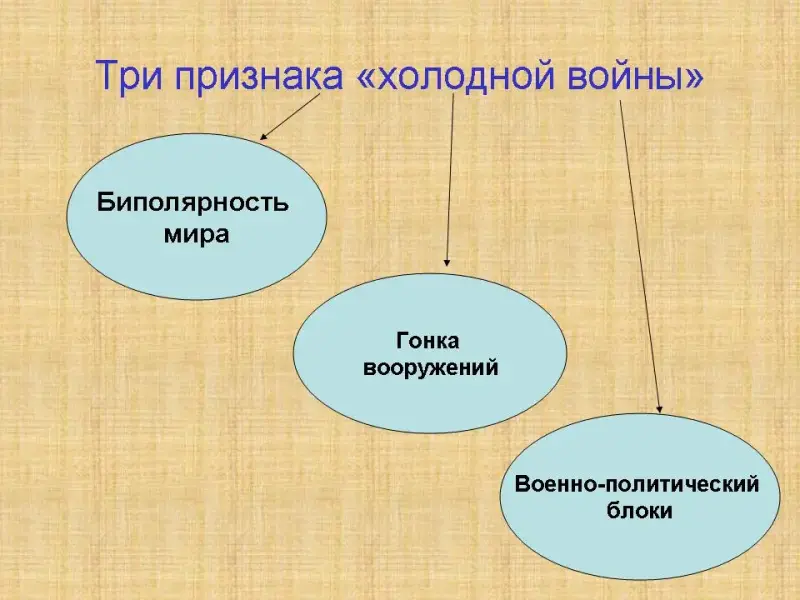 На самом деле они иллюстрируют три признака, отражающих сущность «холодной войны»: Биполярность мира, гонка вооружений, военно-политические блоки. Давайте подведем итог урока. Что же такое «холодная война»?