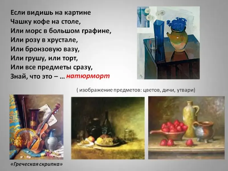 Знай, что это - натюрморт. (Изображение предметов: цветов, дичи, утвари)