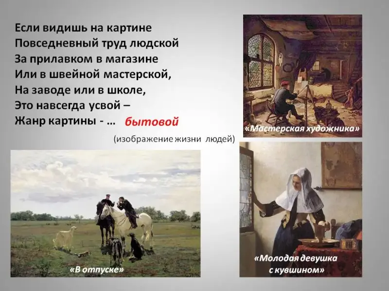 - Ребята, прослушайте, пожалуйста, стихотворение и отгадайте, о каком жанре изобразительного искусства идет речь.