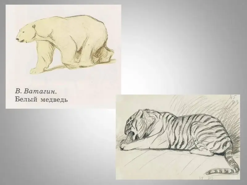 (Слайды 17, 18, 19 с работами художника В. Ватагина. Рассматривание и обсуждение.)