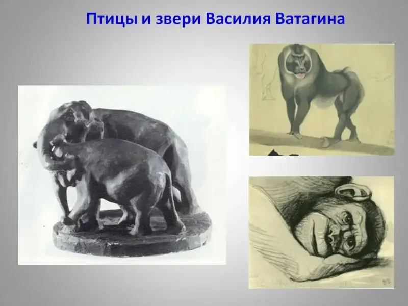 Животных изображали карандашом, красками, углем и одним из русских художников-анималистов был Василий Ватагин, который очень любил животных и всю свою жизнь изучал их повадки и пластику, восхищаясь