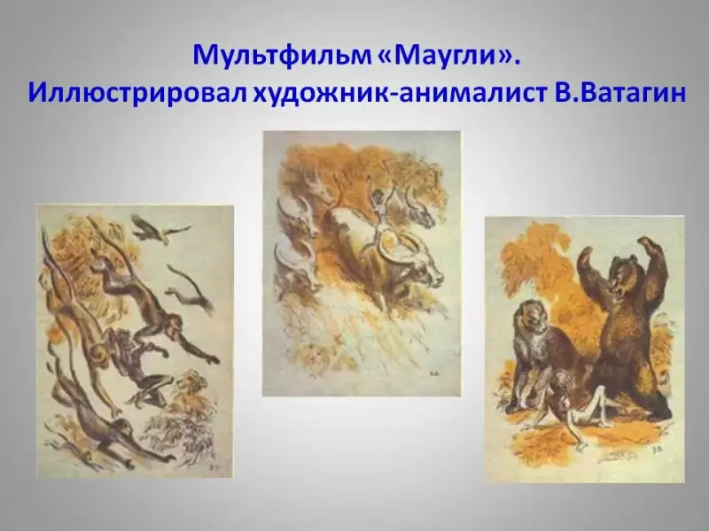 Мир животных величественный и гордый. Ребята, вы смотрели мультфильм «Маугли»? Вот этот мультфильм иллюстрировал художник-анималист В.Ватагин. (Слайд 20)