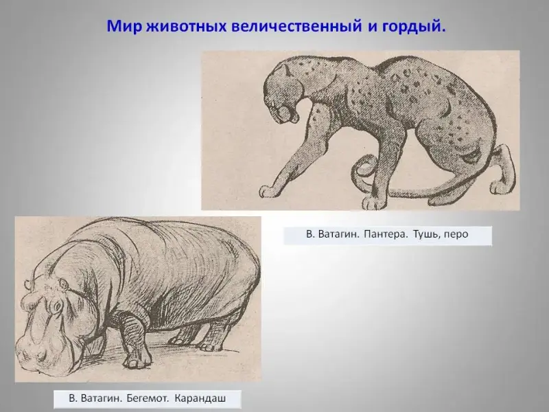 (Слайд 21. В.Ватагин. Бегемот. Карандаш)