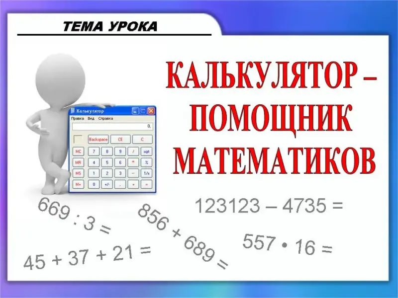 Тема урока: «Калькулятор - помощник математиков» (Слайд 2)