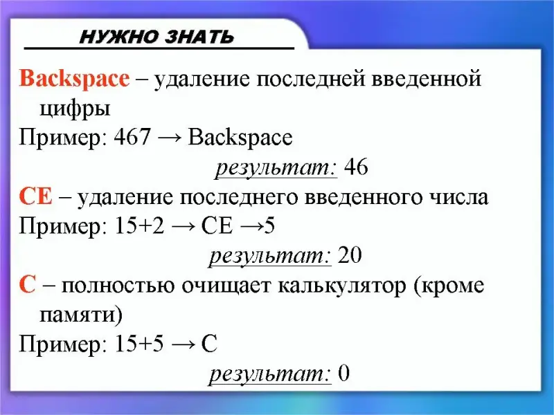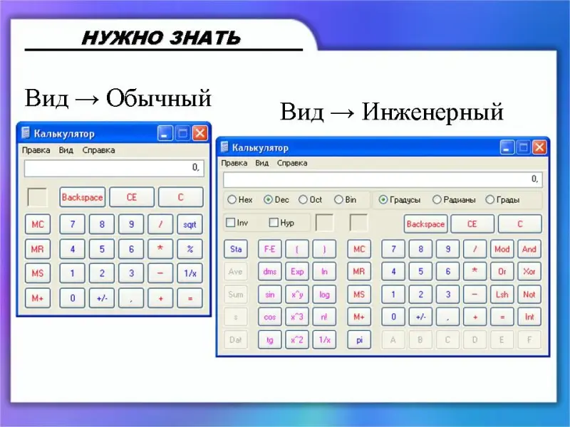 (Слайд 13) У Калькулятора есть два вида: обычный и инженерный. Пока что нам достаточно функций режима Обычный.