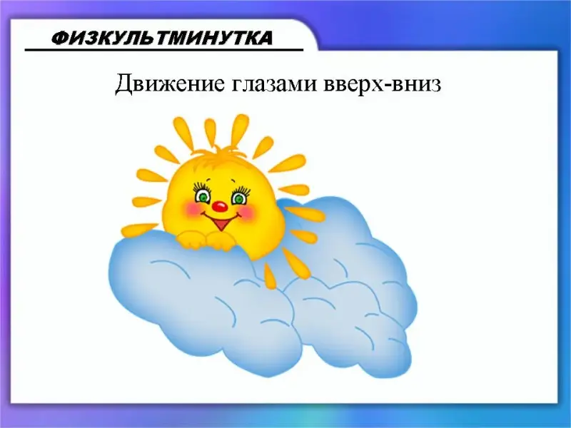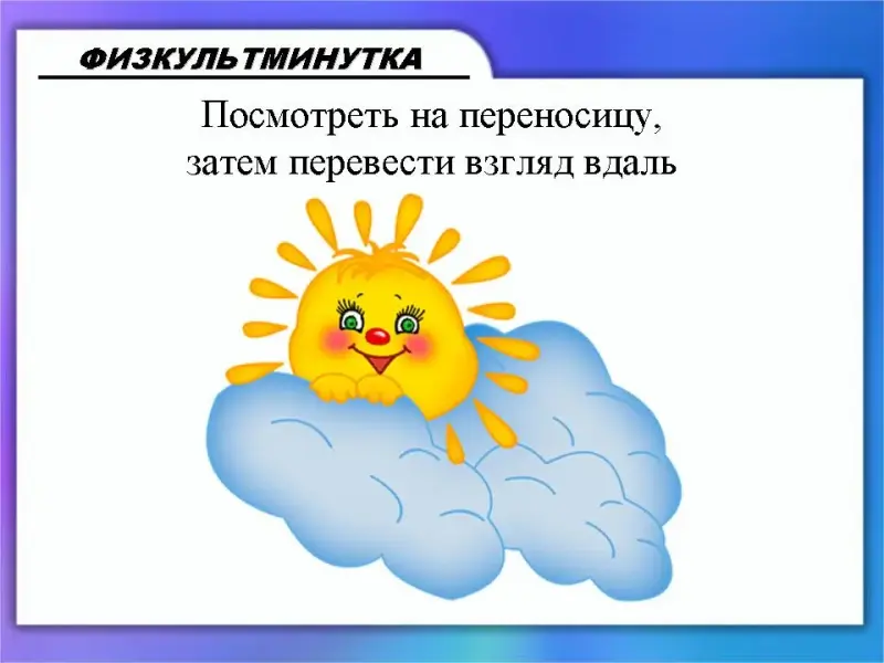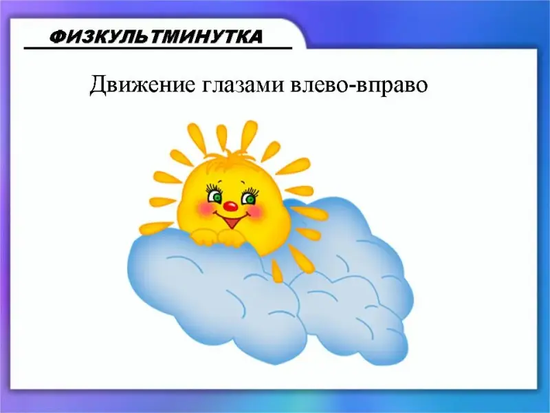 Работа с вычислениями, выполняемыми на компьютере, требует особой внимательности и напряжения глаз. Поэтому прежде чем перейти к сложным примерам давайте проведем гимнастику для глаз (Слайд 22 - Слайд 26)