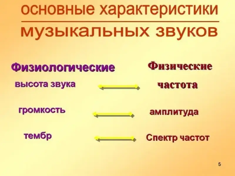 Музыка характеризуется воздействием на эмоциональное состояние людей, соотношением частот (высот), громкостью, длительностью, тембром, переходными процессами.