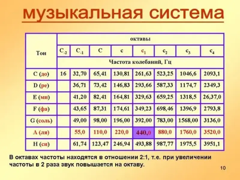 Таблица основных чистых тонов: до, ре, ми, фа, соль, ля, си.(просмотр таблицы 1, С 10)