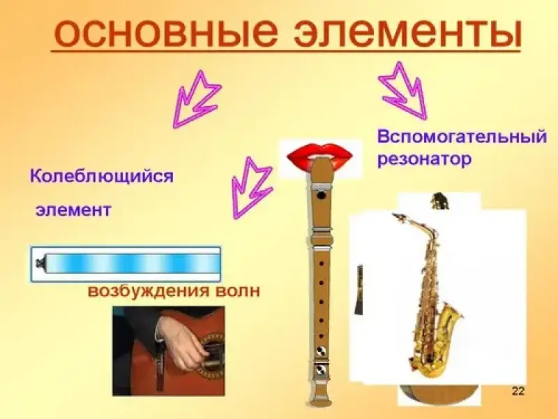 При рассмотрении любого музыкального инструмента, с точки зрения физики можно выделить три элемента:
