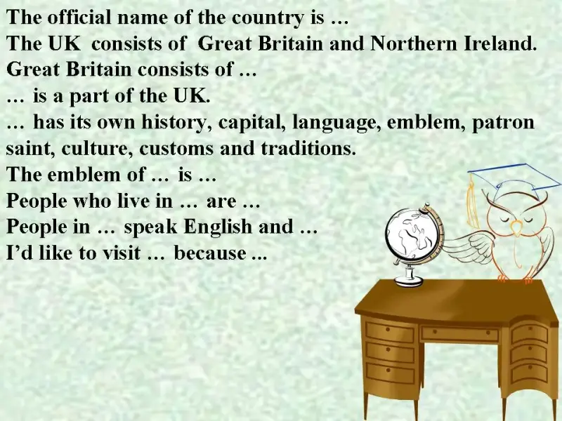 X. Следующее задание для команд - составить рассказ о Соединенном Королевстве (слайд 13):