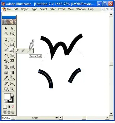 Для того чтобы удалить часть контура, можно использовать инструмент Erase (Ластик) группы Pencil (Карандаш). Действие этого инструмента не распространяется на текст и объекты, созданные с помощью инструмента Gradient Mesh (Градиентная сетка).