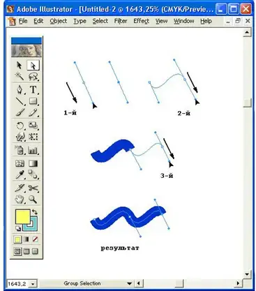 С помощью инструмента Реn (Перо) так же получают следующие опорные точки и определяют кривизну линий. Впрочем, поправить (отредактировать) линию можно в любой последующий момент после завершения рисования (поэтому вначале бывает достаточно набросать подходящее количество опорных точек для предполагаемого контура).