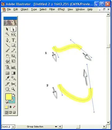 Для получения выпуклого сегмента кривой первую управляющую точку следует перемещать в сторону предполагаемой выпуклости, а вторую - в противоположную сторону. Если вторую точку перемещать в ту же сторону, то получается S-образная кривая.