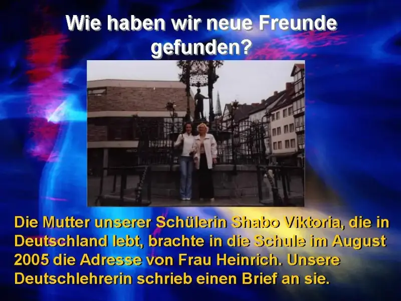 Julja: Und ich möchte immer eine Freundin in Europa haben. Jetzt habe ich sie. Sie heißt Michelle, ist 12 Jahre alt und kommt aus Niedersachsen. Sie besucht die 6. Klasse des